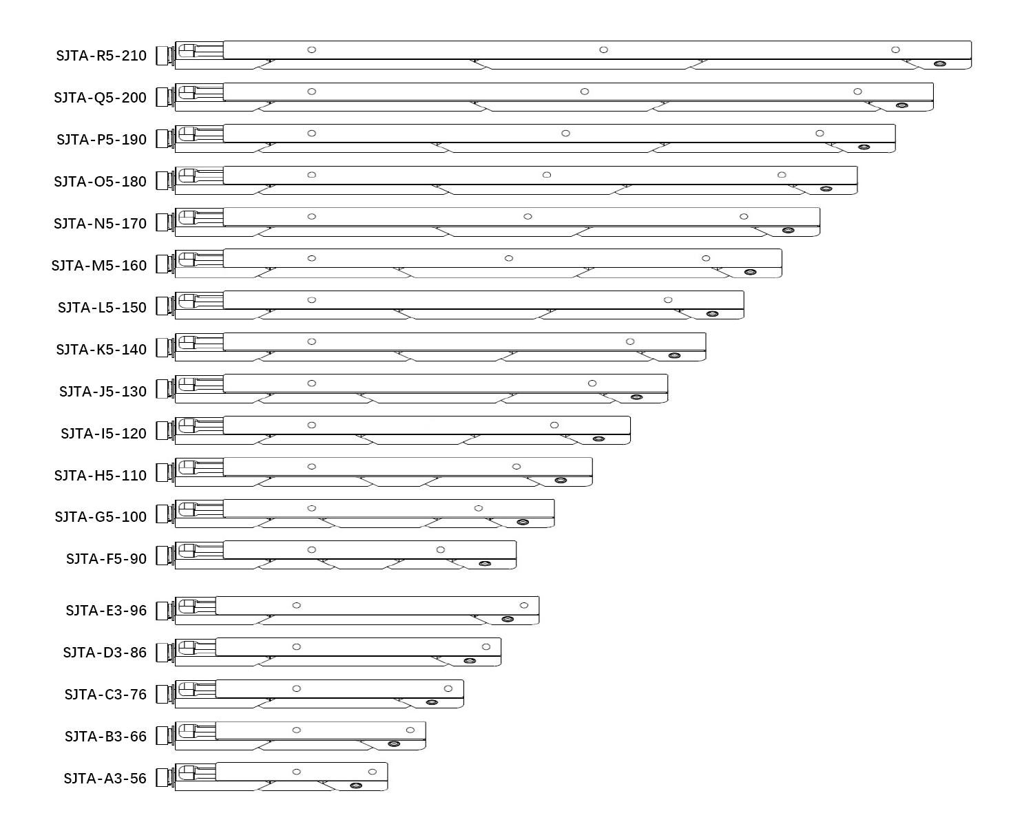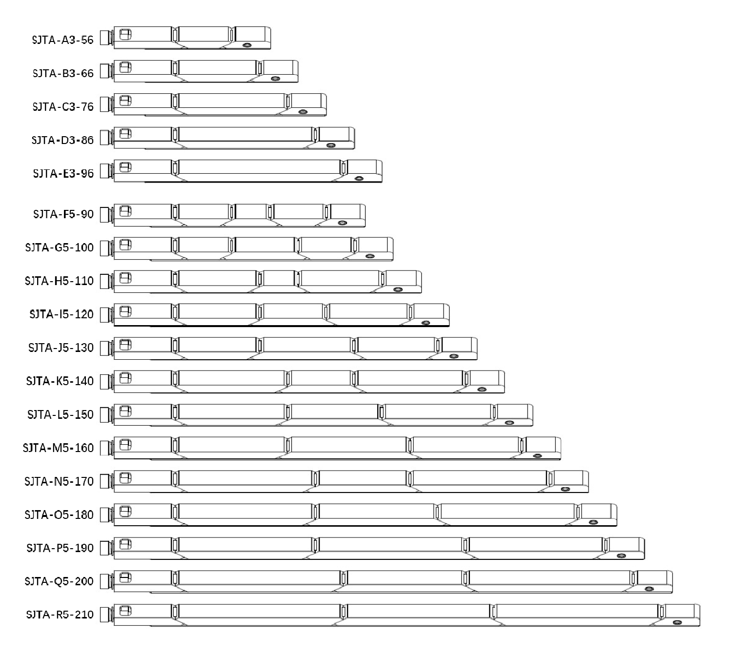 SJTA系列锁紧条采用优质铝合金制成,具有高强度、抗振动和防松脱性能。其标准宽度为6.4mm,自由长度可调(56-210mm),并配有M2安装孔,非常适合用于紧固PCB板、坚固的机箱模块和工业设备组件。该产品支持定制尺寸和表面处理(阳极氧化/喷砂),广泛应用于工业控制、通信和服务器机箱领域。